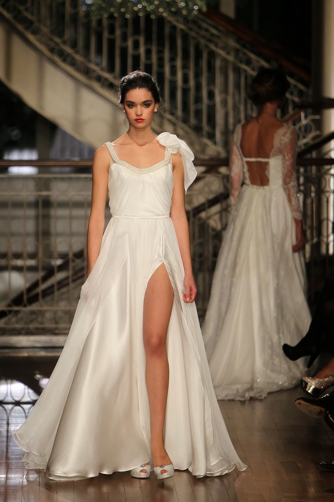 Os vestidos de noiva são delicados, ideais para serem usados por noivas românticas.