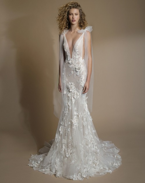 Entre as tendências para 2019 encontra-se a utilização de capa. Em muitos casos a capa é elaborada de tule com ou sem aplicações. Quem optar pela capa deve dispensar o véu.