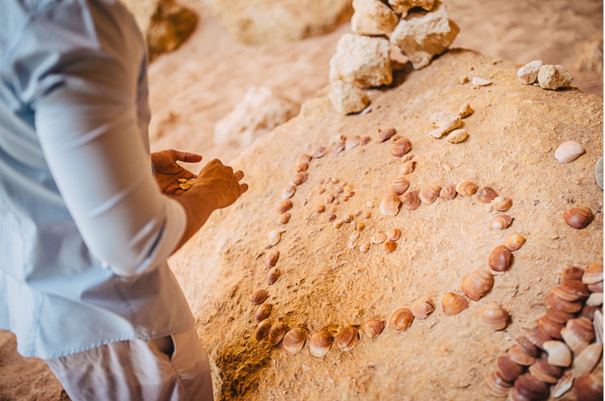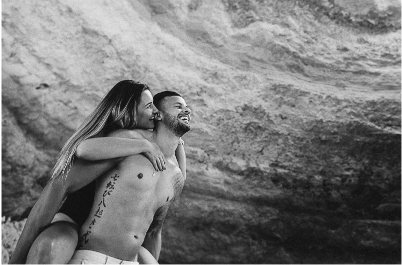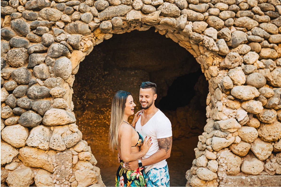 O outro local escolhido por eles foi a Gruta de Benagil, inclusive essa gruta é um dos cartões postais de Portugal quando o assunto é praia, também situada na região de Algarve. Para chegar no local, o noivo alugou uma lancha que em 5 minutos nos deixou dentro da gruta. E lá tivemos a experiência mágica de estar dentro de um lugar que mais parece uma pintura, isso foi inspirador para belas fotos. Foi um dia de muitos risos, muita conexão entre o casal e também de conhecer lugares que foram com toda certeza desenhados pelo criador.
