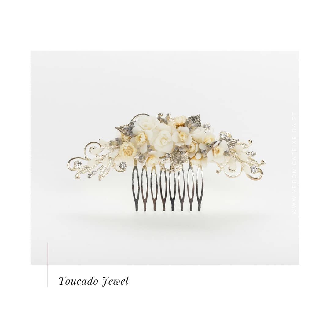 O seu look de noiva está quase completo, mas falta um certo toque final. O que lhe parece escolher um toucado lindo? Esse tipo de acessório consegue dar um grande upgrade a qualquer penteado, para não mencionar que servem a vários propósitos. Além de ser lindo, um acessório de cabelo chique pode afastar os fios soltos do rosto, da cerimónia à recepção, o que é algo especialmente importante para as noivas de cabelo comprido. Nós entendemos totalmente que a tendência das ondas é absolutamente linda, mas ao longo do dia os fios de cabelo saem constantemente da posição pretendida. Mesmo se tiver cabelo mais curto, optar por um toucado pode adicionar um toque especial ao penteado escolhido.